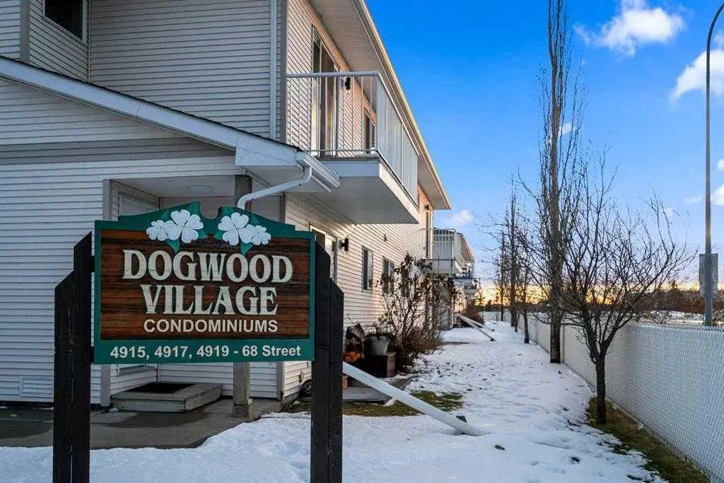 GROUND FLOOR CONDO FOR IMMEDIATE POSSESSION! Perfect property for those who don't want stairs. Fresh paint & vinyl flooring. Kitchen with an abundance of counter space. Living room gives lots of natural light and is just steps from your parking spot. Two bedrooms and a full 4-piece bathroom. Full laundry service and a new hot water tank in 2025. Additional storage room immediately outside your unit. Walking distance from all the west end grocery stores, shopping, & the Camrose Golf Course as well.